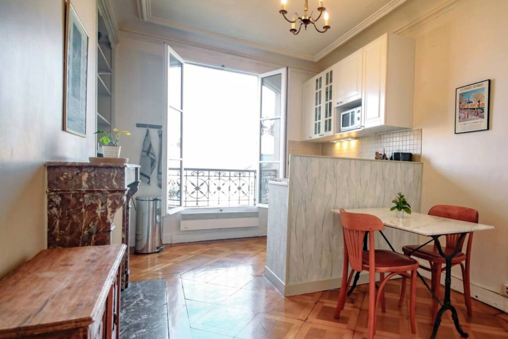 It is flooded with natural light, in a quiet street of Le Marais with little traffic.